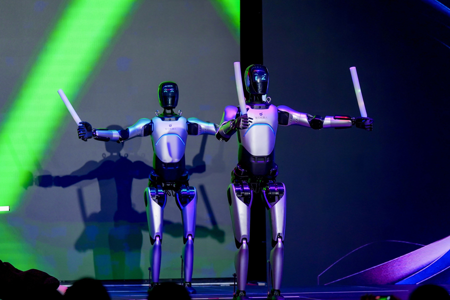 舞台上,上海戏剧学院杨青青教授团队研发的机器人演员“学霸01”身着传统戏服,与真人演员默契配合,一招一式精准复刻京剧经典身段,刚柔并济的姿态引得台下快门声不断。一旁,上戏硅基班与智元机器人的实验戏剧同样吸睛,金属机械的转动、停顿与现代音乐碰撞出独特韵律,虚实交织的舞台张力让观众掌声此起彼伏。